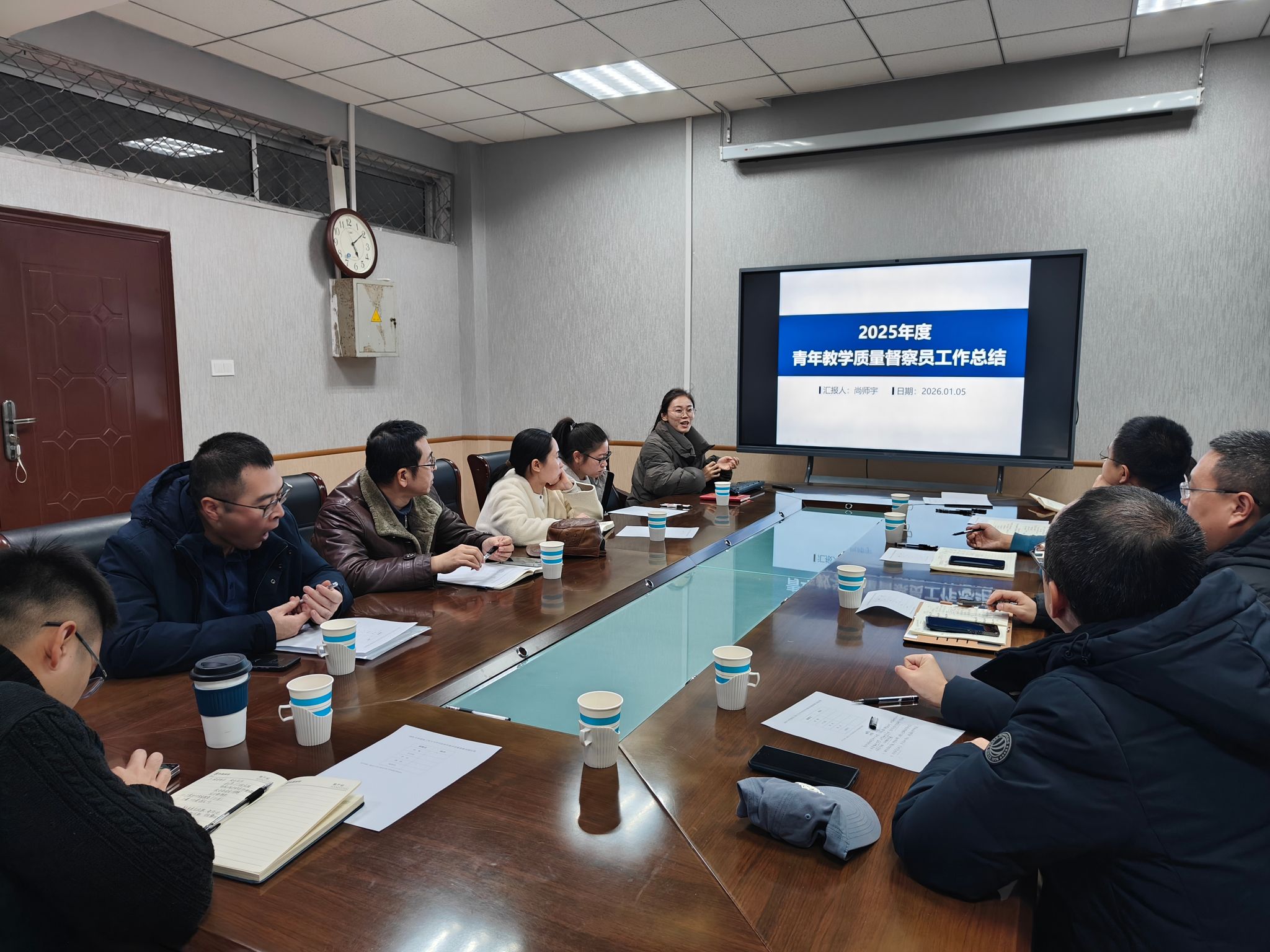 为系统总结本学年教学质量督察工作成效,凝聚教学管理共识,进一步提升教学质量保障水平,我院于2026年1月5日下午在建筑馆203会议室组织召开了2025年度青年教学质量督察员工作总结汇报会。学院党政领导班子成员、各系(中心)负责人、教学管理人员及全体青年教学质量督察员参加了会议。