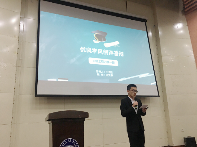 为了进一步加强班风、学风建设,充分发挥班集体的作用,培育良好的育人环境,实现人才培养目标,建筑工程与力学学院面向2018级所有班级于2018年11月开始通过动员申报、实施创建、自评自查、验收评比、表彰奖励六个环节进行优良学风星级班级创评工作。本次创建创评答辩会是在学院优良学风星级班级创评活动领导小组,按照创评细则和评选条件,参照《考察表》和中期督察结果对优良学风星级班级所报材料进行审核评分后,由申报集体的学生代表进行汇报展示。2018级16个申请参评班级均按活动要求完成了既定目标,班级整体学风均有所好转。答辩中,一些优秀班级采取的《班级学习公约》制定、寝室学习小组互帮互带以及人文读书会等举措,给学院学风建设提供了新的思路。