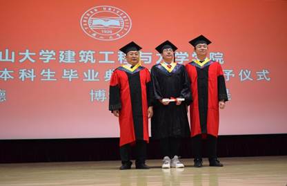 随后进行2021届本科毕业生学位授予仪式,院长赵庆新和各系主任为毕业生授学位。流苏向左,身份从在校生变成校友。合影只有1秒,在燕大的回忆却有无数秒。这是建工学院大家庭温暖的告别礼,更是毕业生人生腾飞的送行礼。
