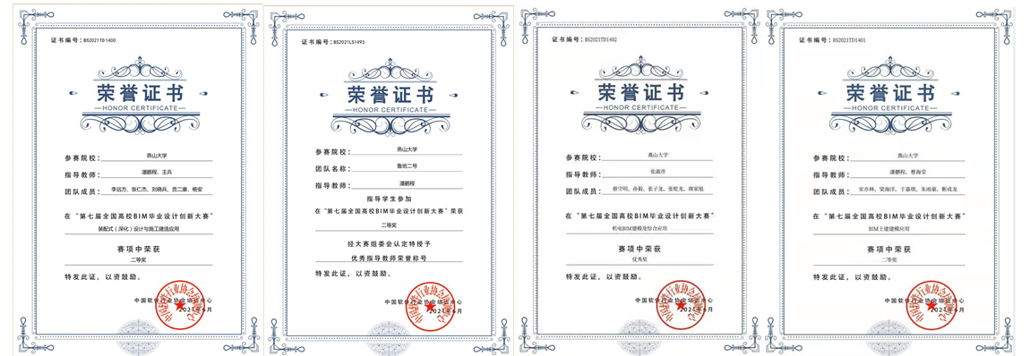 BIM毕业设计大赛促进学生掌握并精通BIM技术,实现BIM技术从企业应用到课程建设、人才培养的贯通,全面培养了大学生创新思维和问题解决能力,增强大学生工程管理创新与实践能力,促进了全国高校大学生创新创业和相互交流学习。本次获奖是学校和学院高度重视学科竞赛的成果,也是长时间以来坚持积极引导广大青年学生开展创新创业实践活动结出的硕果。