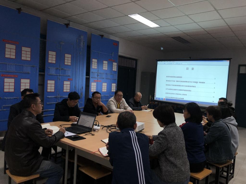 本次会议由实验中心刘小蛮主任主持,并带领实验中心全体教职工学习本次专题教育相关资料和文件。学习的主要内容包括高等学校教师职业道德规范,高等学校课程思政建设指导纲要,教育部关于高校教师师德失范行为处理的指导意见,关于加强和改进新时代师德师风建设的意见,以及燕山大学本科生课程考试管理规定等相关文件和规范。