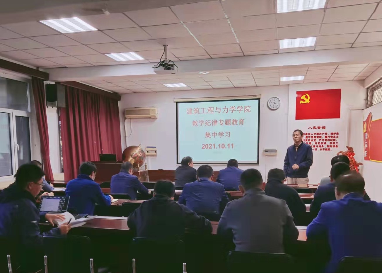 2021年10月11日下午,我院在建筑馆211室进行了教学纪律专题教育线下集中学习。学院领导、各系及实验中心正副主任和党支部书记、学生辅导员参加了学习。