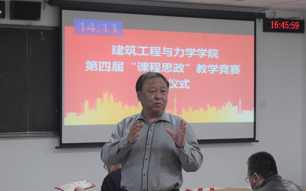 为全面推进学院课程思政建设工作深入开展,切实促进专业课与思政课同向同行,我院于2021年11月5日下午在(四)613教室举办了建筑工程与力学学院第四届课程思政教学竞赛。部分老师到场观摩了比赛。