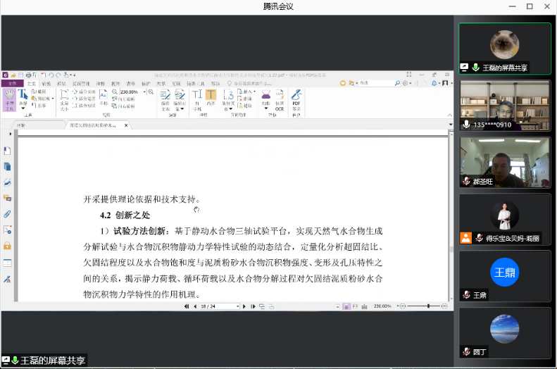 会议采取腾讯会议的形式举行,由我院博士生导师郝圣旺副院长主持并担任校内点评专家,特邀广西大学土木工程学院院长、博士生导师梅国雄教授作为校外点评专家。梅教授2021年入选全球前2%顶尖科学家榜单,是岩土领域知名专家。