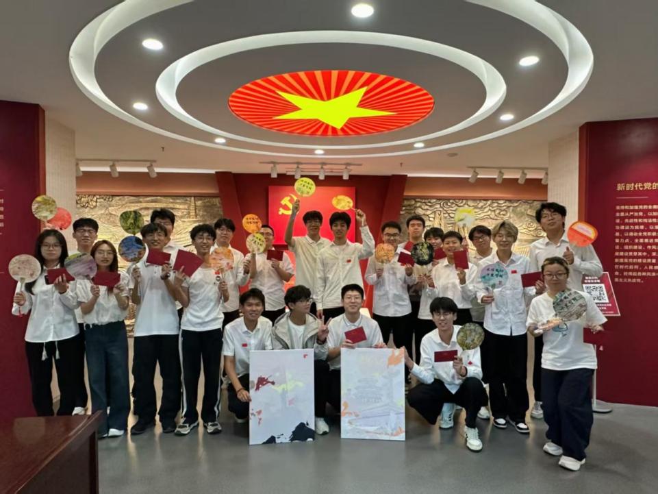 参观结束后,同学们又亲身体验了漆扇与火漆制作等非遗手工艺品制作,在动手实践中感悟红色文化的深厚内涵。活动最后,大家共同执笔为红色画布着色,绘制党的光辉历程和感人故事,用艺术表达对党和国家的深厚情感与真诚祝福。