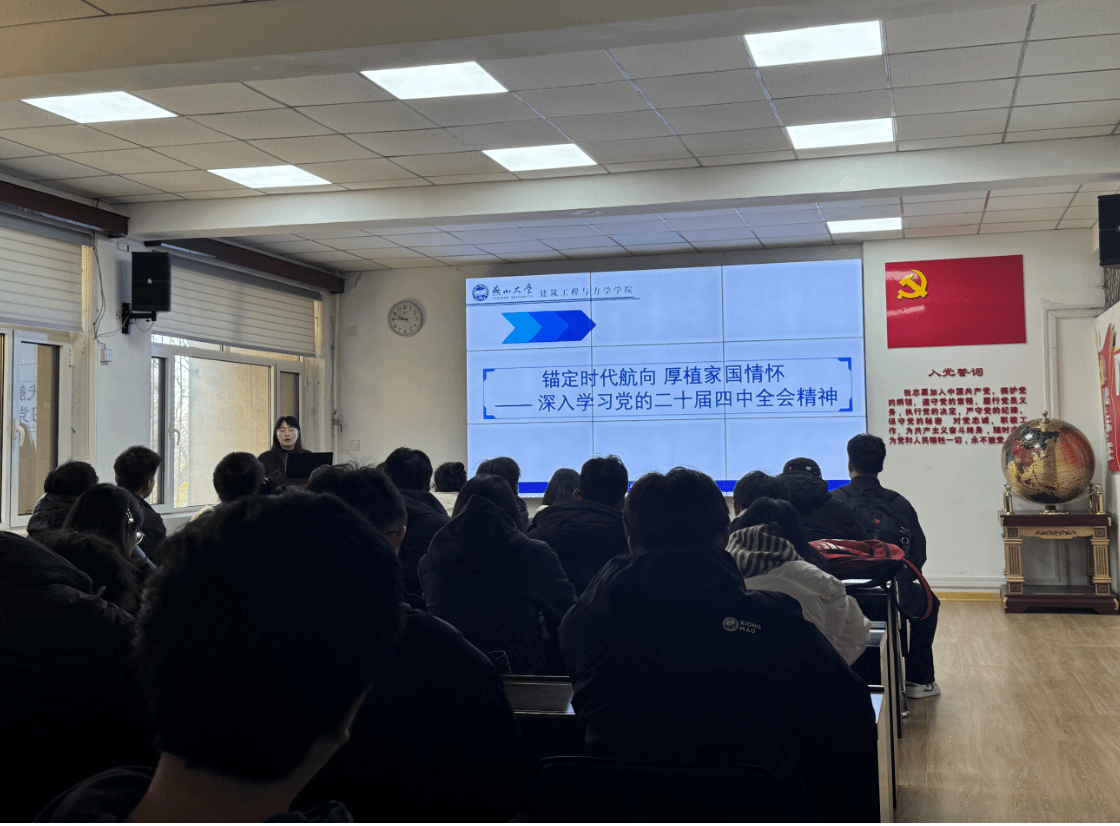为引导广大青年学生深刻领会、准确把握党的二十届四中全会的重大意义、精神实质和实践要求,切实将思想和行动统一到党中央的决策部署上来,近日,建筑工程与力学学院面向全院学生组织开展了党的二十届四中全会精神专题学习活动。本次活动通过集中学习、分组研讨形式,实现了各年级、各班级学习的全覆盖,在学院内迅速掀起了学习贯彻全会精神的热潮。
