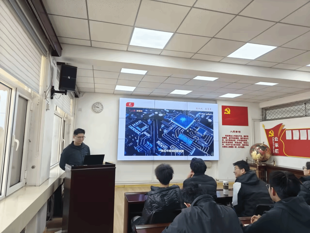 在研讨环节,选取“乘势而上,续写中国奇迹新篇章 —— 党的二十届四中全会侧记”“为基本实现社会主义现代化奠定更加坚实的基础 ——《中共中央关于制定国民经济和社会发展第十五个五年规划的建议》诞生记” 等资料,组织成员分组讨论。党员们立足专业,探讨建筑行业在国家发展新征程中的机遇,如绿色建筑、智能建造如何呼应规划要求,将理论学习与职业发展规划相衔接,激发实践动力。