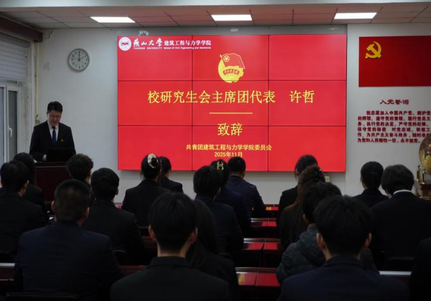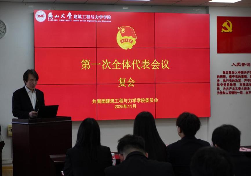 2025年11月20日,建筑工程与力学学院第四次学生代表大会暨第四次研究生代表大会在建筑馆顺利召开。学院党委副书记沈鹏超、团委书记王男、校研究生会主席团代表许哲、各兄弟学院学生会和研究生会主席团代表应邀出席本次大会。开幕式由学院研究生会主席团成员孟婧主持。