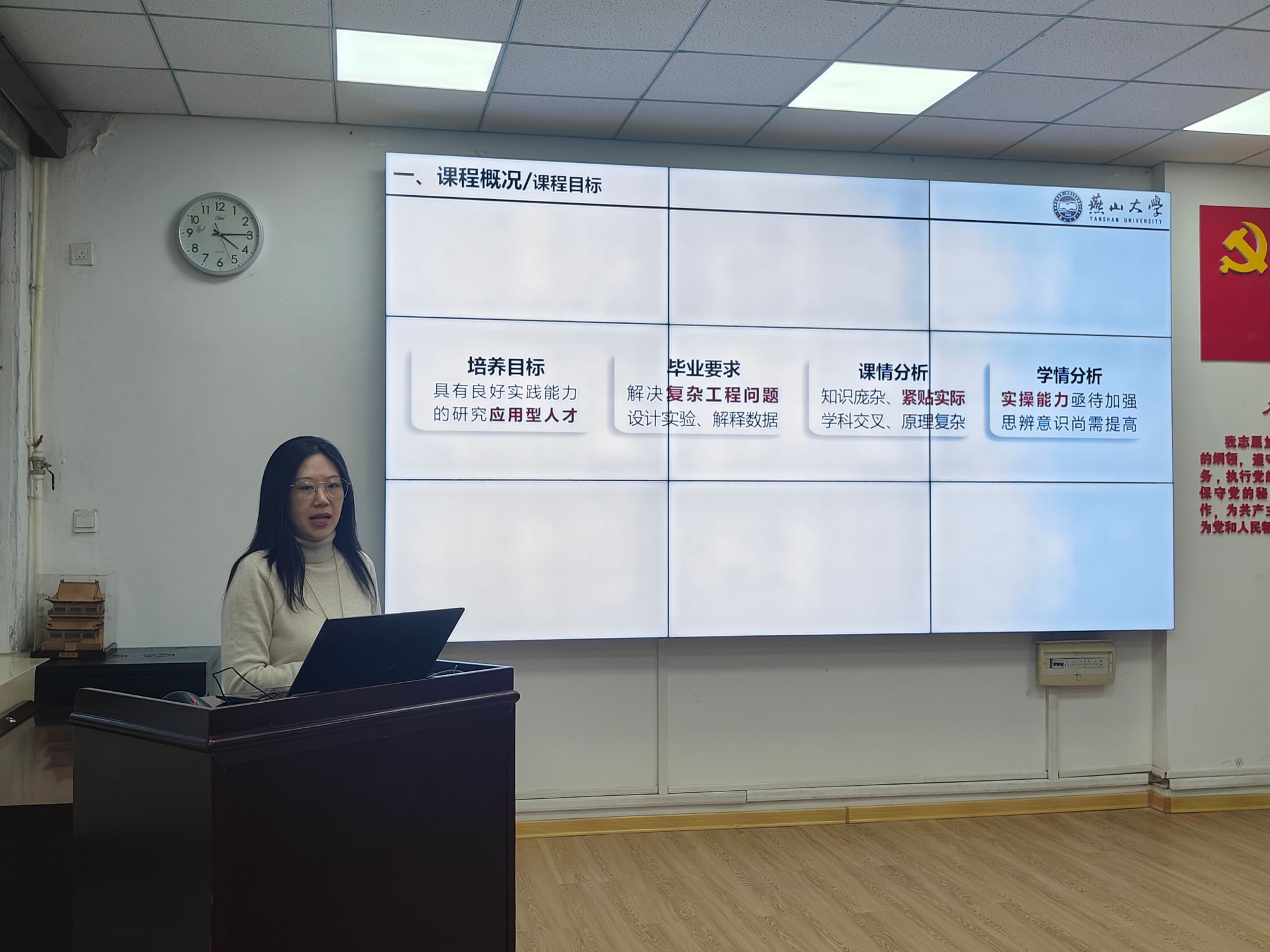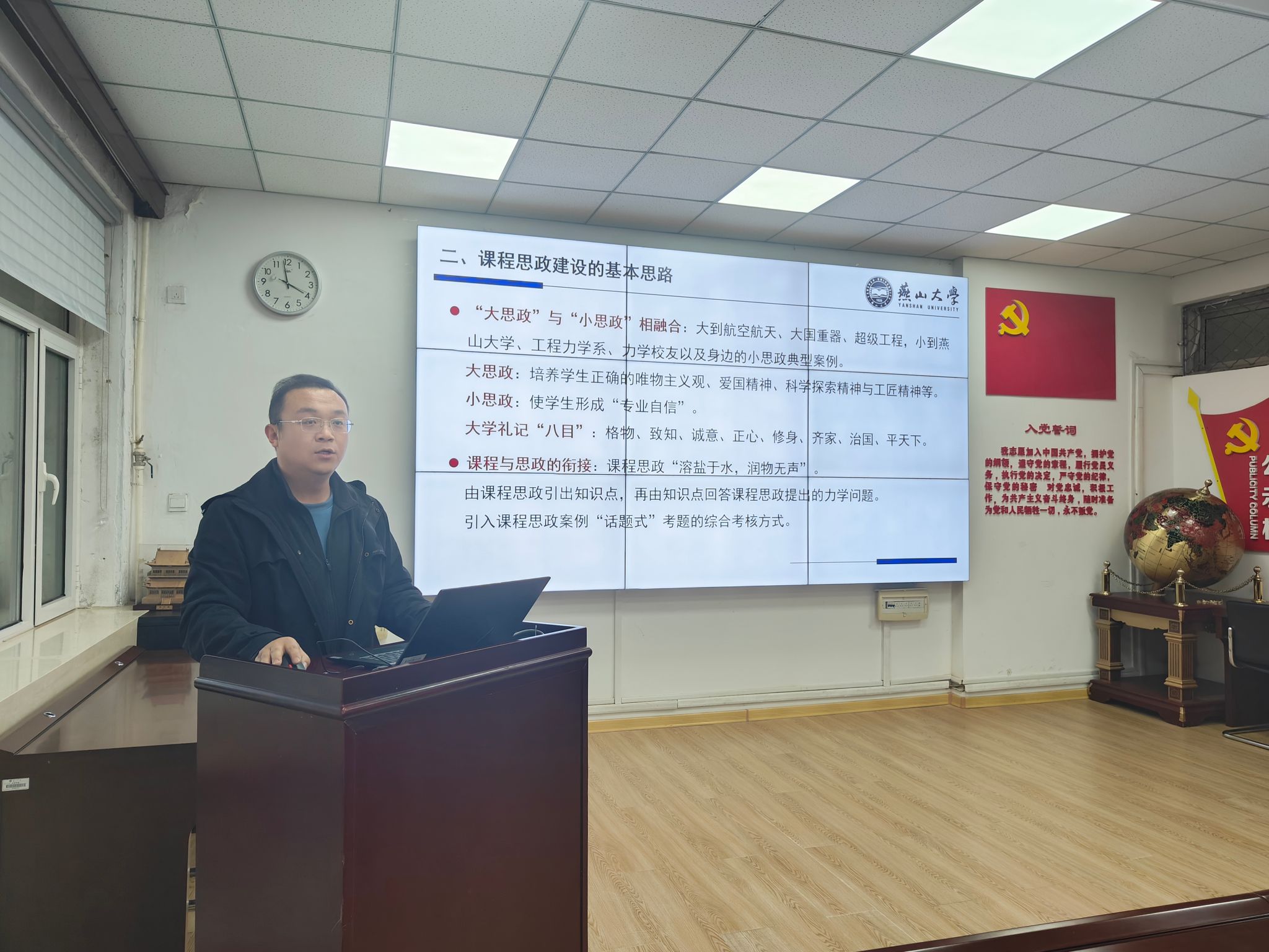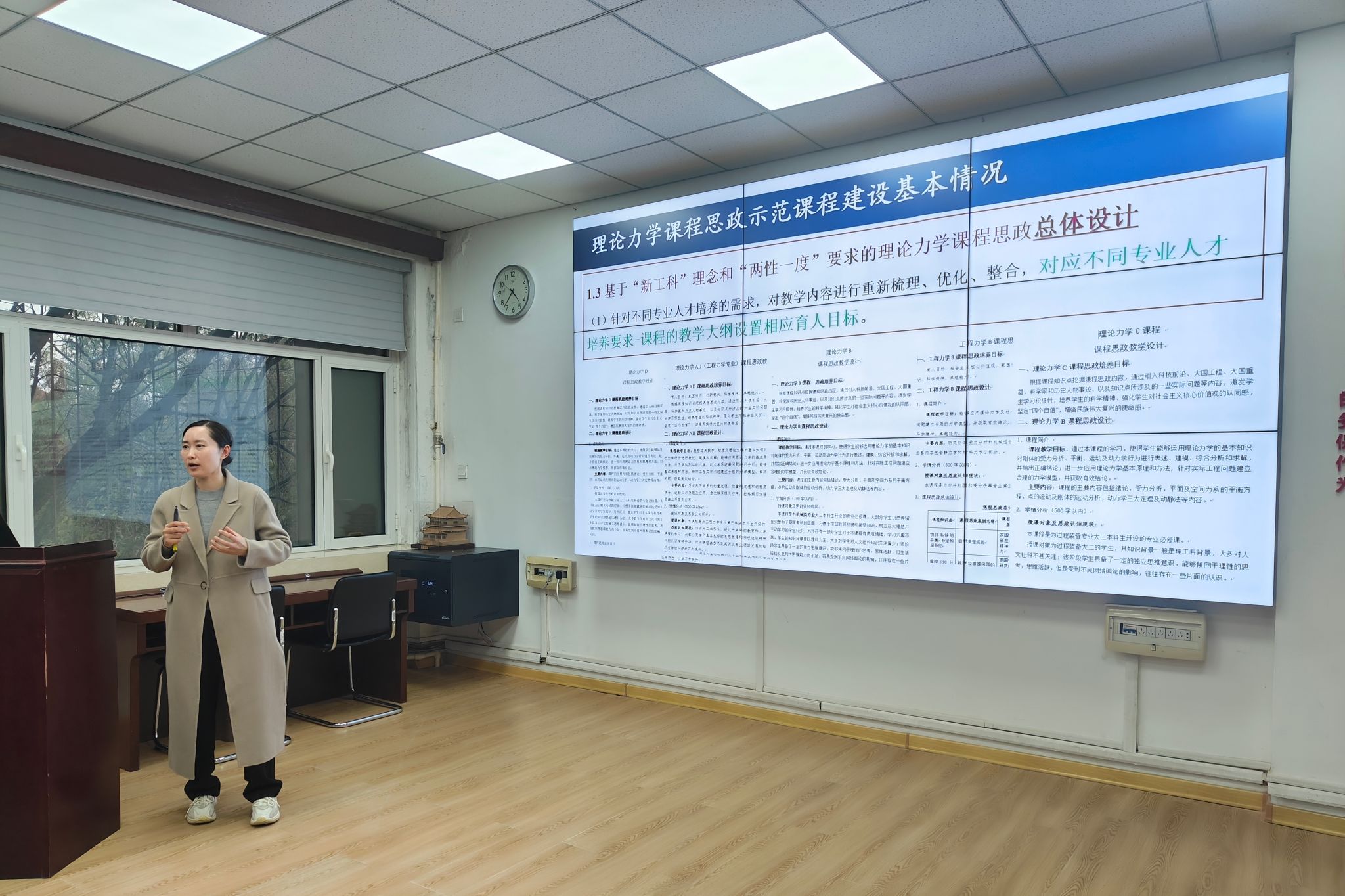 工程力学系郝颖分享了“围绕课程教学团队与教研机制建设”,阐述了如何通过集体备课、专题研讨实现思政元素的精准挖掘,将价值塑造有机融入知识传授与能力培养,实现思政教育与理论力学教学的同向同行。同时分享了基于“新工科”理念和“两性一度”要求的理论力学课程思政总体设计方案及课程思政示范课程的建设成果与持续建设计划。