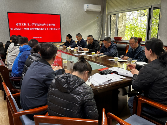 4月20日下午,建筑工程与力学学院召开安全稳定工作推进会暨校园安全工作培训会议,学院党委委员、科级干部及系主任参加。会议由学院党委书记王继东主持。