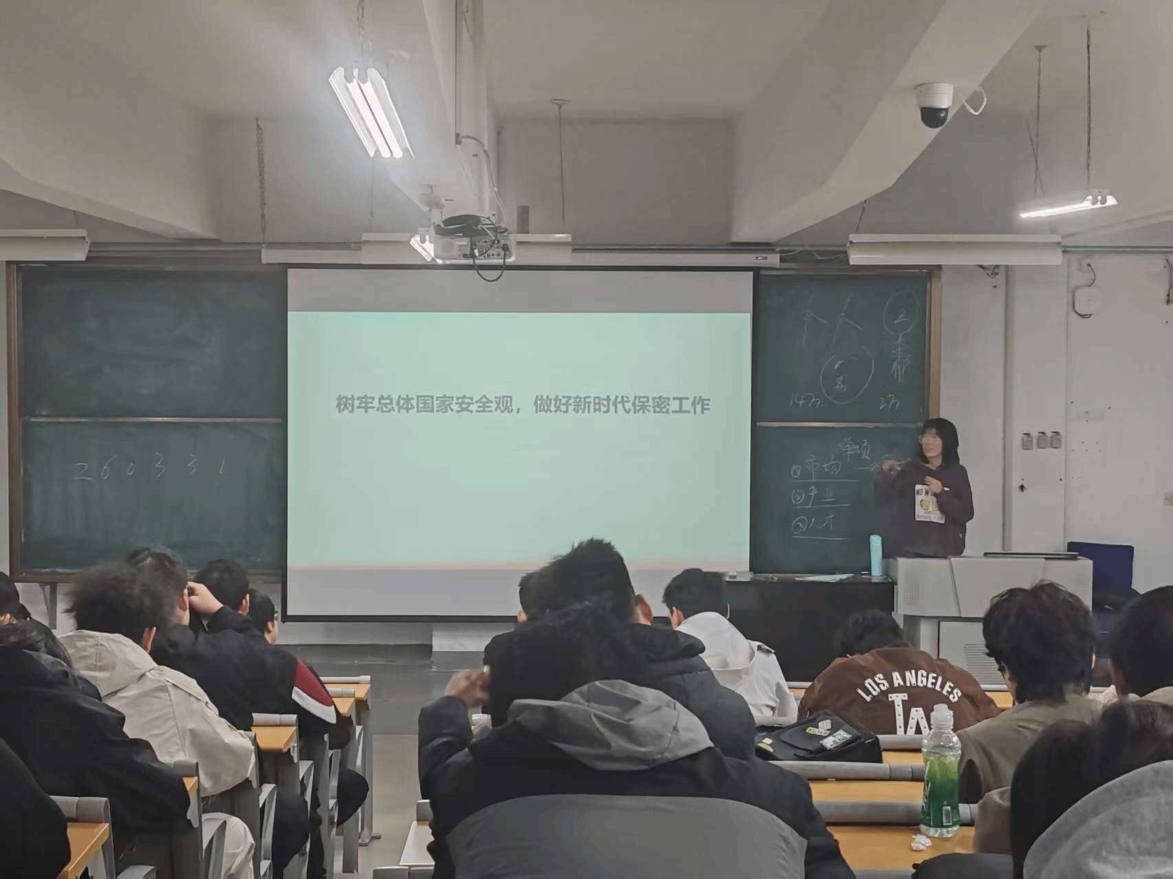 活动伊始,张娟娟围绕总体国家安全观核心内涵及保密法规,结合建工专业,分析学生当前课程设计、工地实习等环节的保密风险,明确工程图纸、项目数据等属于保密范畴。同时结合学生即将考研、就业的实际,提醒学生科研数据、就业后接触的工程核心设计等均与国家安全相关,引导树立“全程保密”意识。随后,组织学生观看保密微电影《无形防线 密链》,通过真实案例让学生直观认识到保密隐患,深刻理解“保密无小事,责任大于天”。